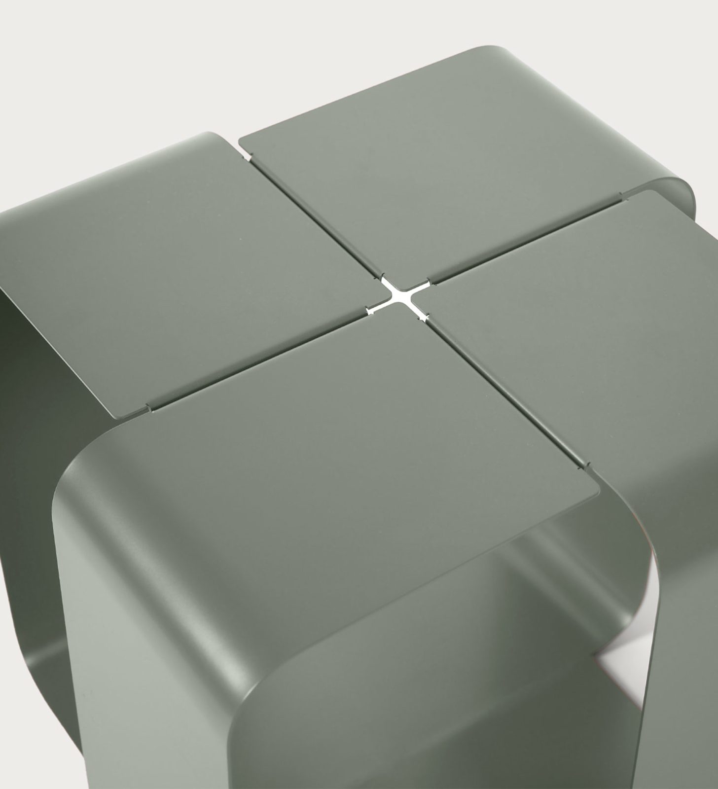 The side table captivates with an innovative manufacturing process that artfully bends a single metal sheet. This technique creates a delicate weave that is visually and functionally impressive. The elegant design seamlessly integrates into modern living spaces, adding a stylish touch.