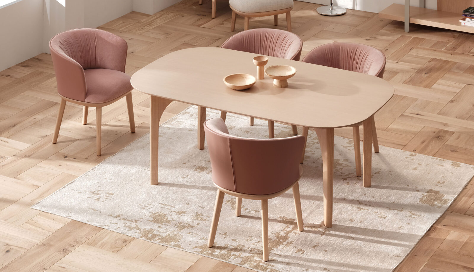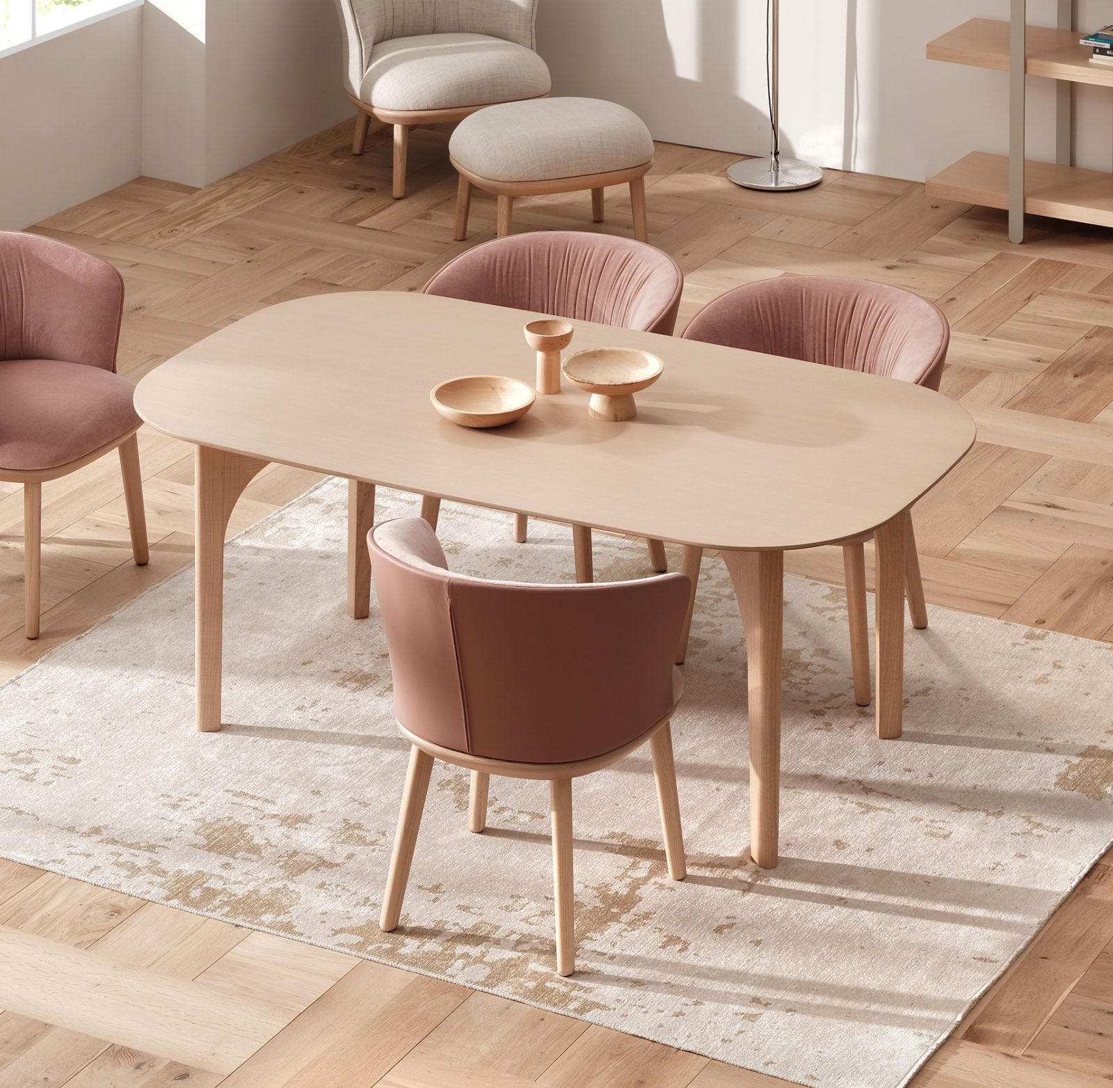 Arco dining table is inspired from the old italian architecture and interpreted with a scandinavian design language. With its four identical legs it creates various arcs from different angles. Simple yet detailed legs are soft and rounded from outside, sharp and strong from inside creating a solid appearance.