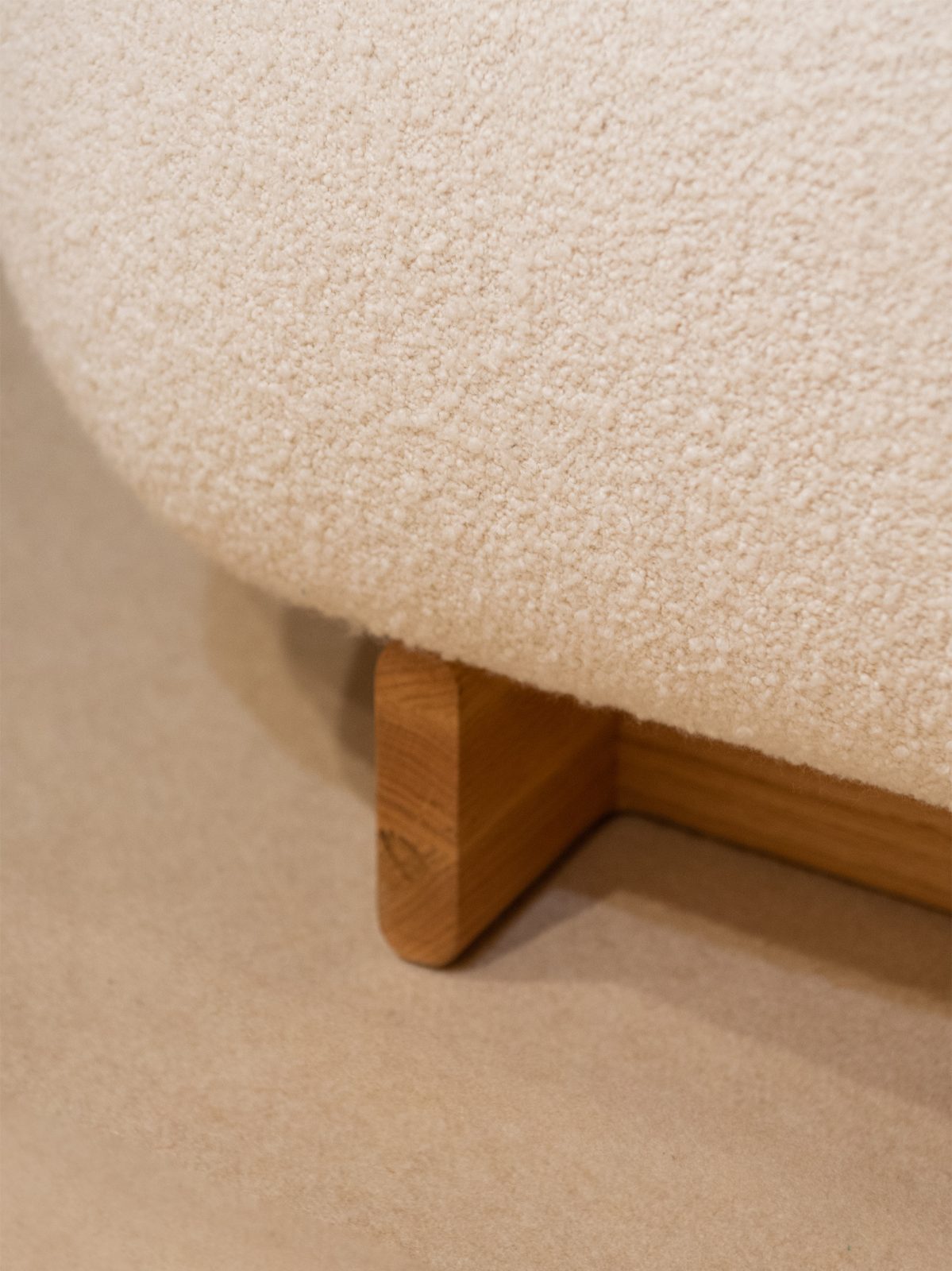 The legs and desk are crafted from oak with handcrafted rounded corners and intricate joinery, emphasizing the artisanal craftsmanship of its production, while the upholstered sections are wrapped in premium Italian fabric, ensuring both durability and comfort that will stand the test of time and future home needs.