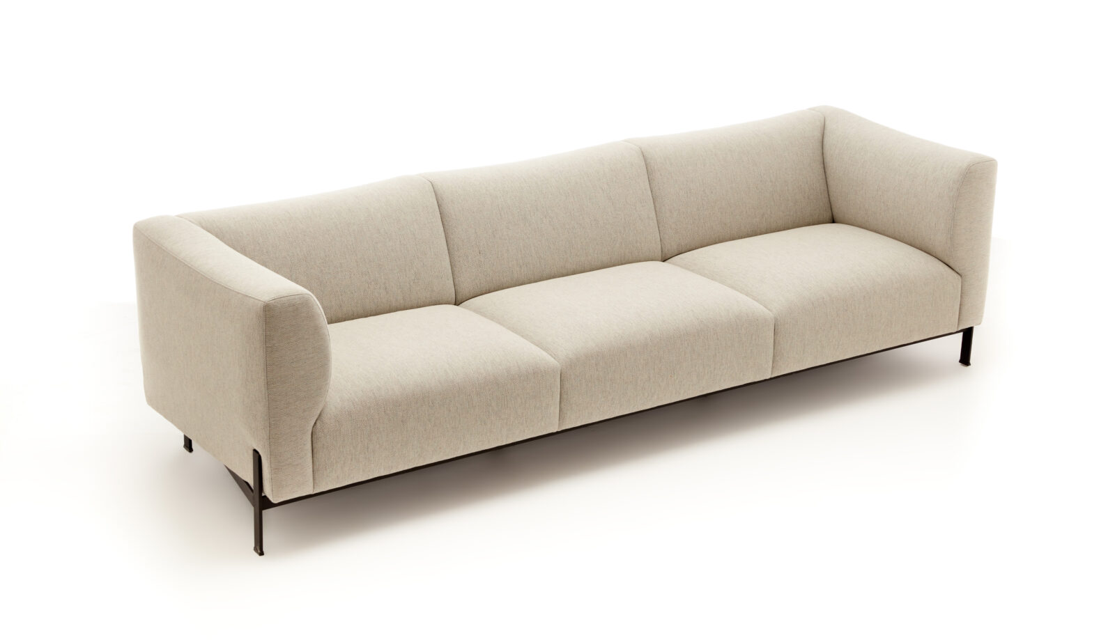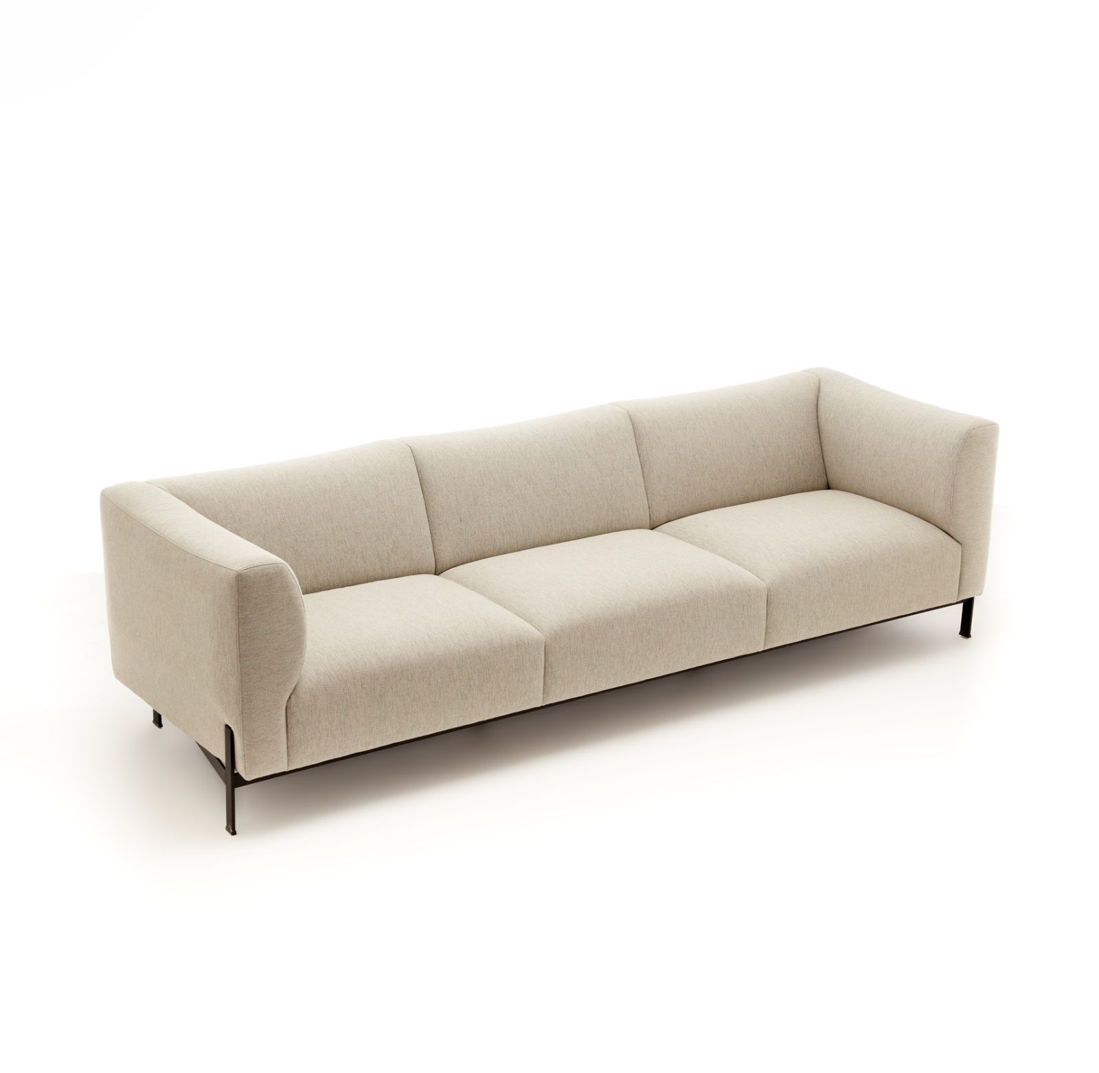 The Krosa Sofa redefines modern comfort with its oversized cushions and minimalistic design. Its slim metal base features a unique structure where the front legs and the back legs connect discreetly beneath the seating area. This innovative cross-like design inspires the name ‘Krosa.’