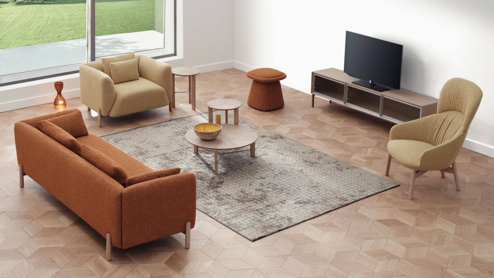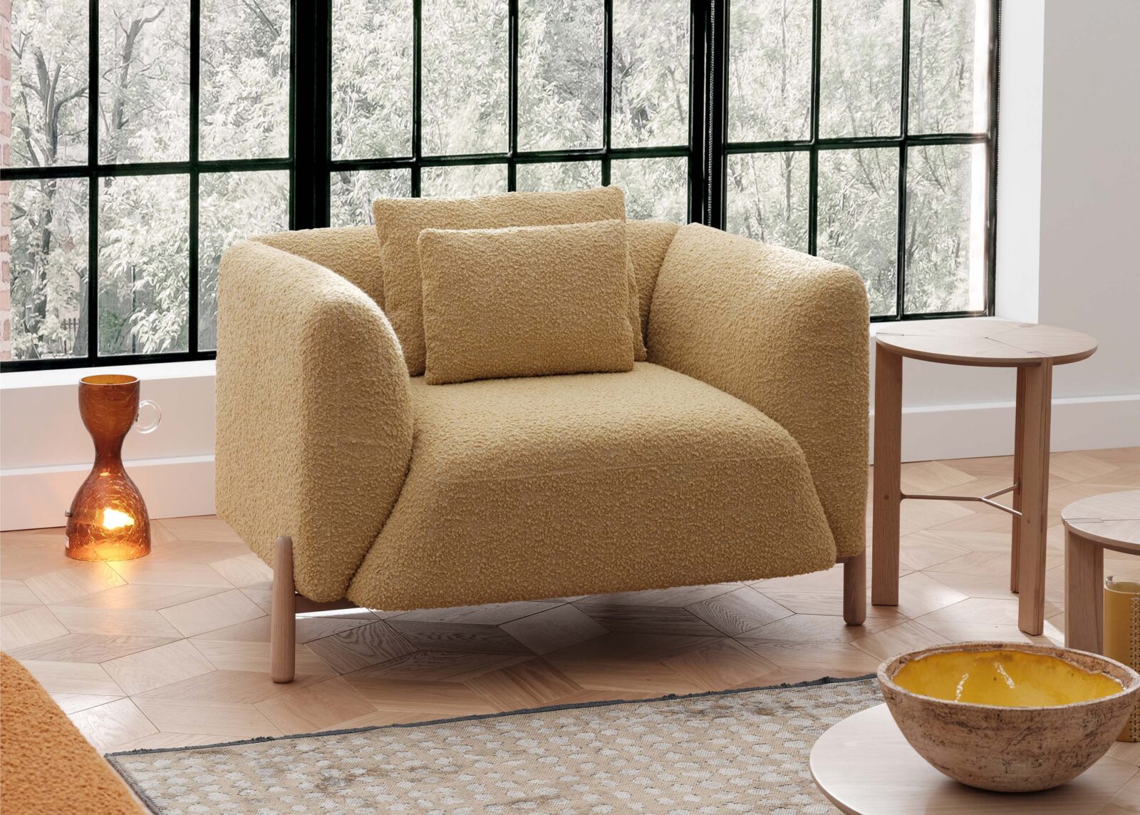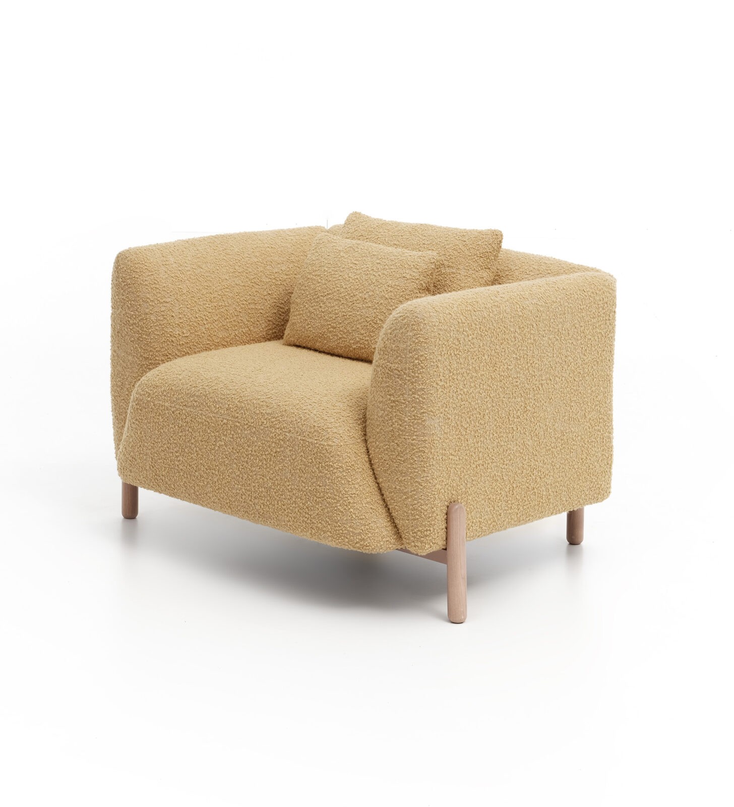 Simple but particular. Universal but original. Lille is a compact sofa that creates a cozy environment around itself wherever it is placed. Its rounded cushions are carried by four elegant wooden legs to give a light look.