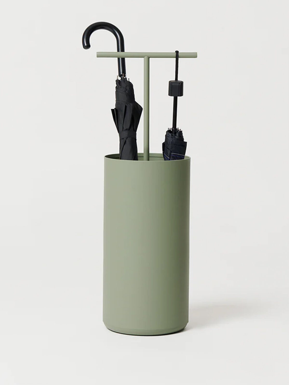 The steel basket opens up to reveal a minimalist frame that doubles as a handle for easy transport and a clever holder for folding umbrellas. Thoughtfully designed to fit compact living spaces, Plu combines elegance and practicality, light enough to move, essential enough to stay.