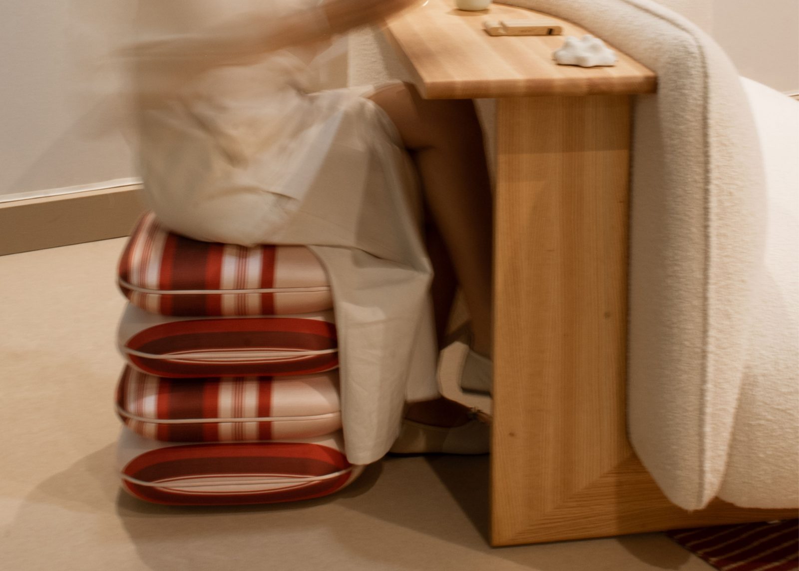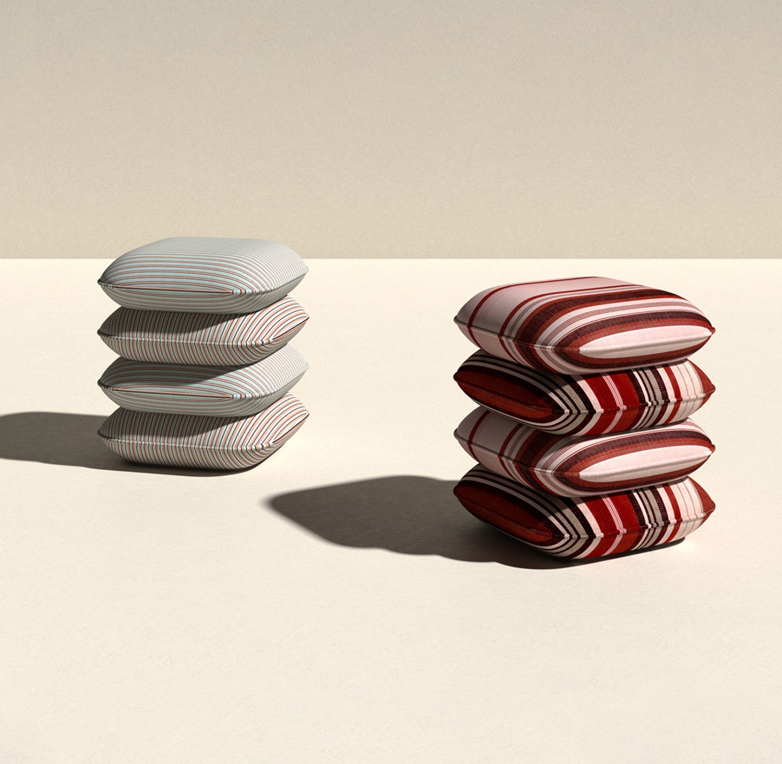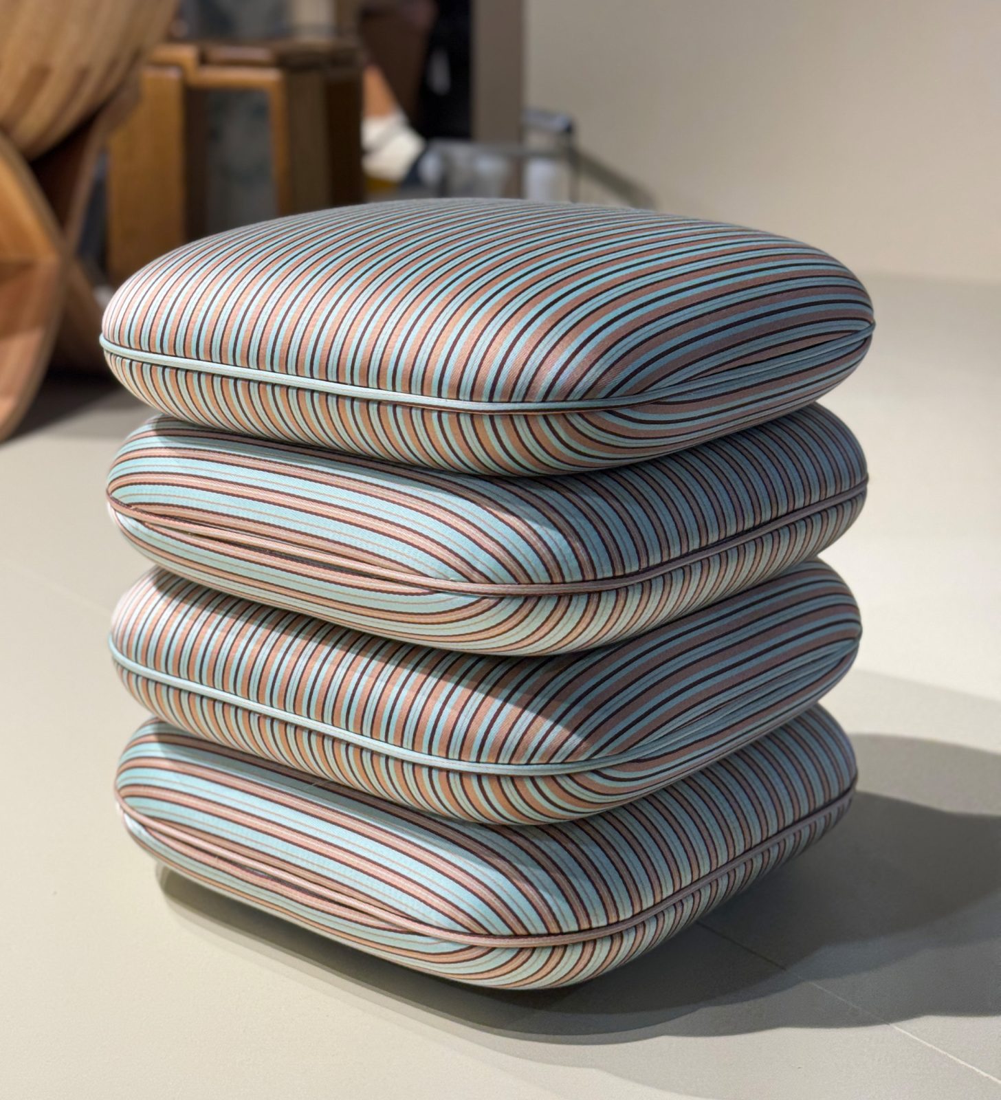 The Sedi stool captures the effortless beauty of stacked cushions, where patterns, textures, and colors naturally blend into a sculptural form.