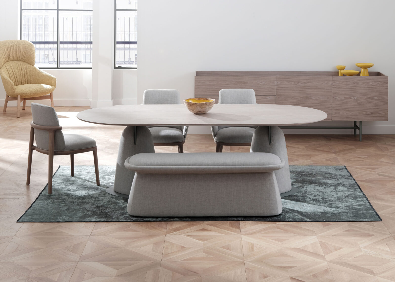 Tiramisu pouf family is an iconic companion to any living setup. Thanks to its silhouette it is easy to grasp and move around. It comes in different sizes with a cushion or tray top. It can be used to welcome your guests thanks to its wide seating, or simply as a side table with its wooden table top options.