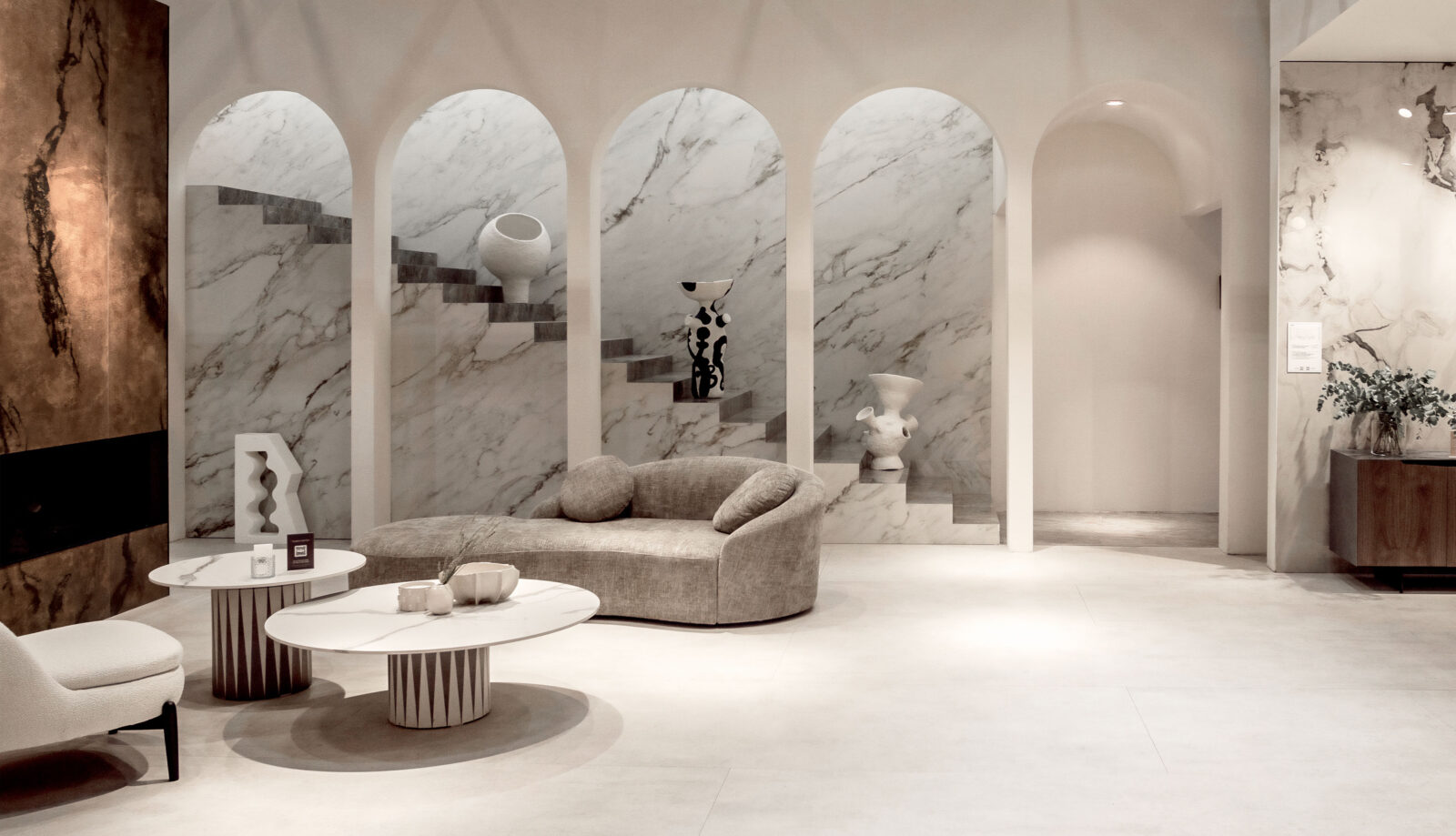 Kale, the leading ceramics company in Türkiye, renowned for its production of tiles and large slabs, approached us to curate the styling for their booth at the Unicera 2023 fair. Our approach focused on creating a serene and balanced atmosphere, ensuring that the design elements enhanced the space while allowing the ceramics to remain the centerpiece.