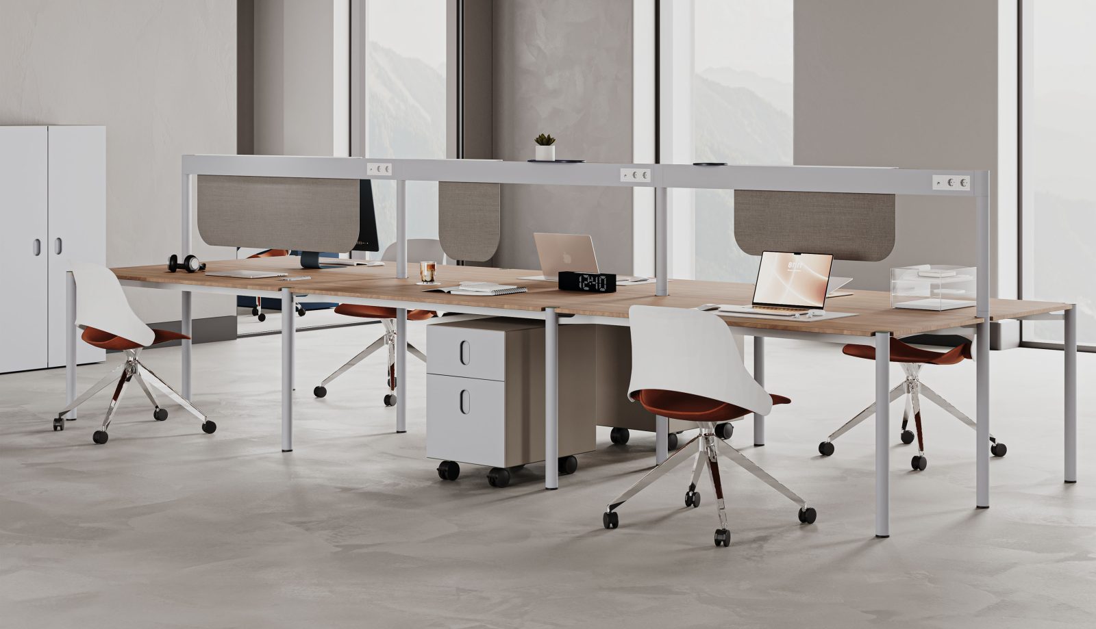 The Unio family is named after the Spanish word for “union,” reflecting its core philosophy of bringing people, functionality, and design together in harmony. This versatile and modular system is crafted to adapt to the dynamic needs of modern workspaces, seamlessly supporting everything from open-plan coworking environments to private offices.