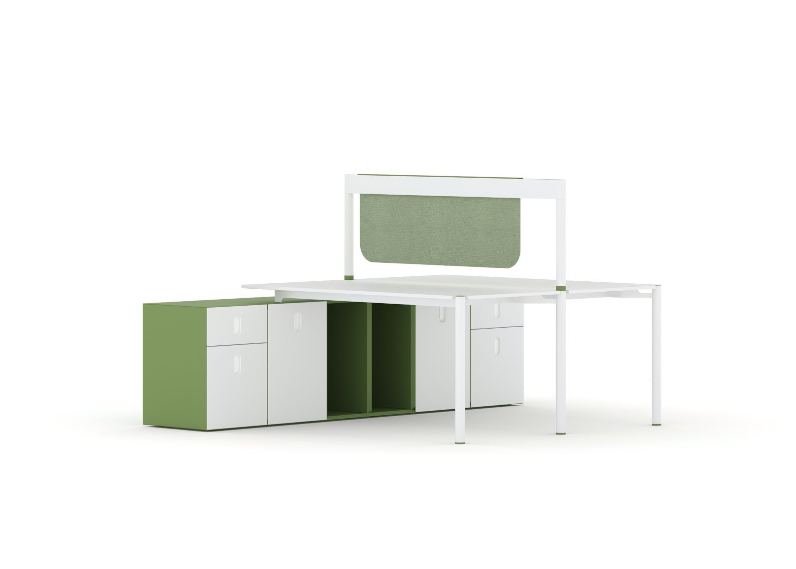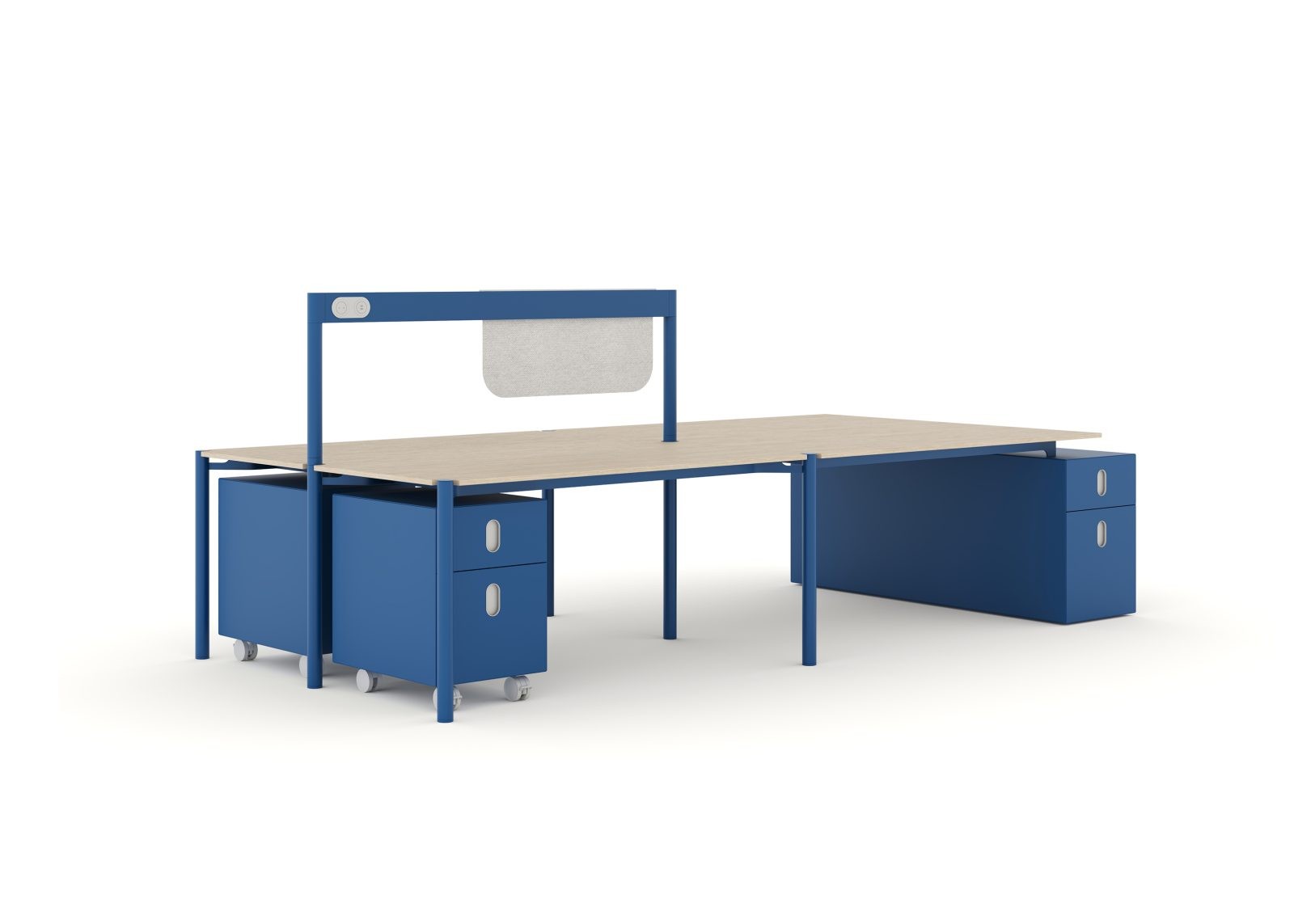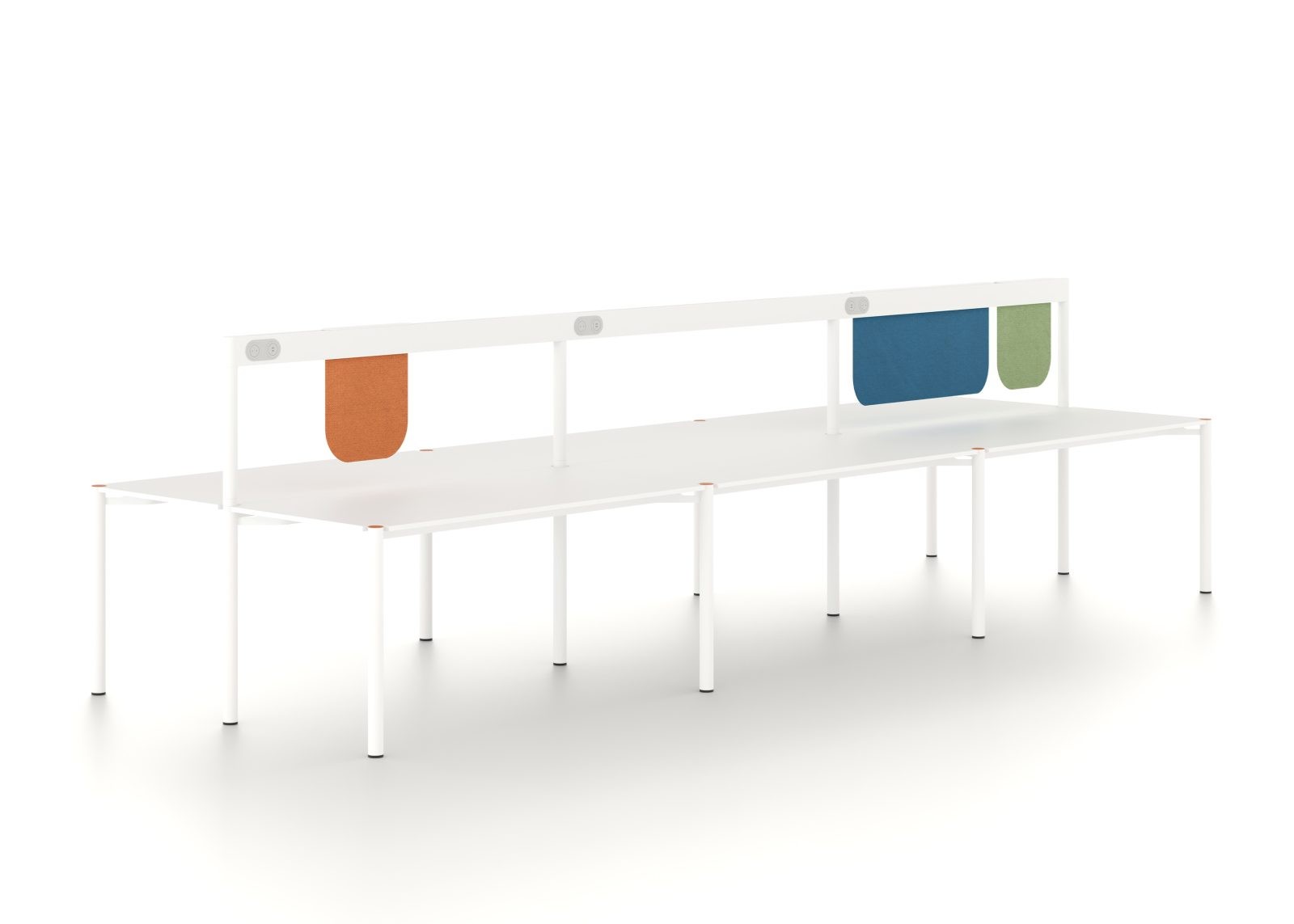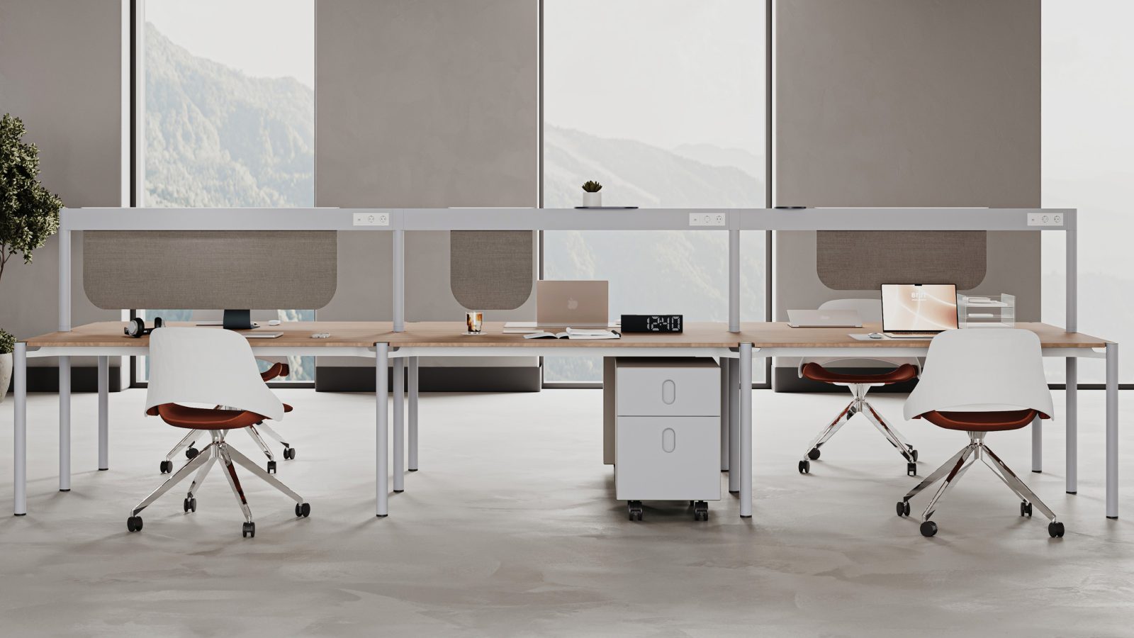 Inspired by the practicality of coworking spaces, Unio combines functionality with a sense of community. Its adaptable elements are designed to foster collaboration while accommodating diverse work styles. A standout feature of Unio is its innovative leg joint design, which enhances both efficiency and versatility. In double-sided table configurations, the shared middle leg supports both table tops and can be equipped with a customizable track system, allowing users to integrate power outlets, partition panels, or various accessories.